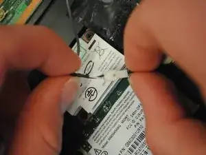 Найдите винт 4 мм с плоской головкой. Открутите его с помощью отвёртки Phillips 00.