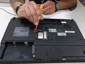 Найдите и удалите 1 винт с крестовой головкой размером 4,2 мм вдоль правой стороны отсека оперативной памяти.