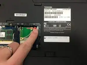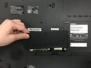 Открутите 1 винт Phillips #0 длиной 7 мм на задней панели компьютера.