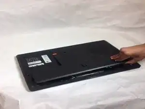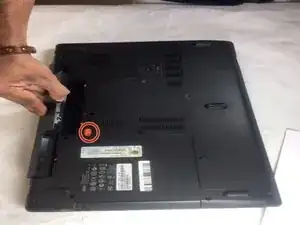 Удалите три винта Philips #0 размером 2,5 мм с задней панели ноутбука.