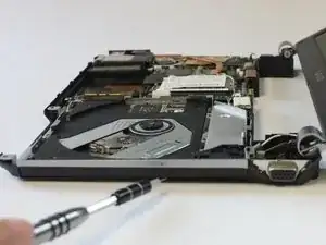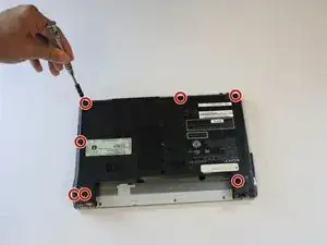 Удалите один винт с потайной головкой Phillips 5 мм №1, расположенный в центре ноутбука, используя битодержатель с битом Phillips PH1.