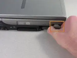 Нажмите на вкладку на внешней стороне оптического привода, чтобы освободить ручку.