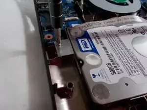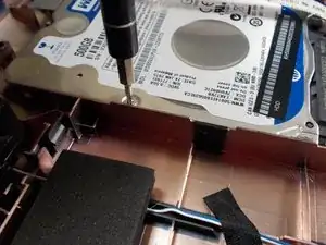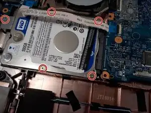 С помощью отвертки Phillips #000 отвинтите пять винтов длиной 1,2 мм, которые удерживают жесткий диск.