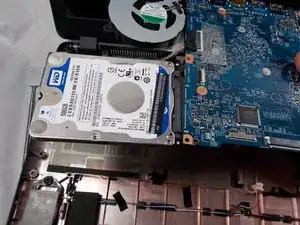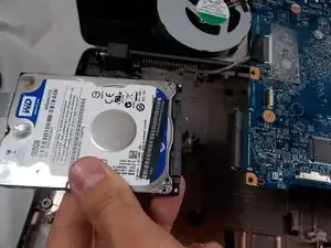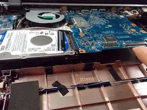 Поднимите жесткий диск, вентилятор, материнскую плату и карту беспроводной сети из устройства.