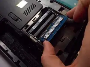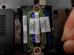 Первая планка ОЗУ должна подняться самостоятельно. Осторожно извлеките эту планку и найдите две металлические полоски, удерживающие нижнюю планку на месте.