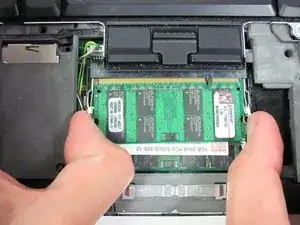 Удалите модуль памяти из слота, потянув перпендикулярно к слоту.