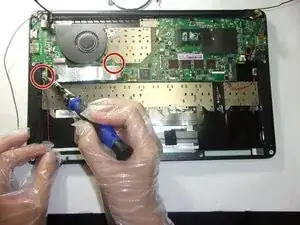 Удалите винты по 3.4 мм по периметру материнской платы с помощью отвертки Torx (T4).