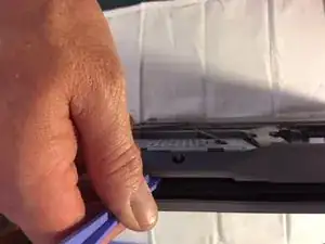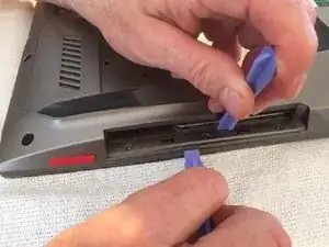 Начните с использования пластикового инструмента, поддев и открыв центральную переднюю часть.