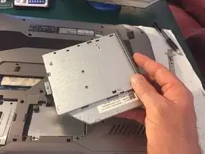 Там находятся 2 маленьких защёлки, зафиксированные в месте, откуда вы вынули оптический привод, их нужно разблокировать.