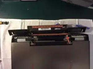 Немного приподнимите и выдвиньте клавиатуру примерно на дюйм, но не больше — под ней прикреплены ленточные кабели.