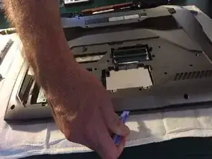 Снимите 3 винта длиной 1/3 см под местом, откуда вы вынули оптический привод.