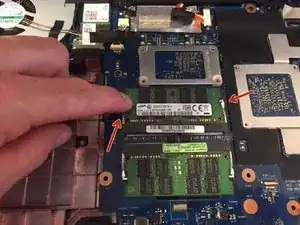 Обратите внимание на защёлки по обе стороны модуля ОЗУ, отожмите их в стороны.
