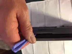 Разблокируйте эти 2 защёлки с помощью двух пластиковых инструментов. Затем продолжайте поддевать сторону.