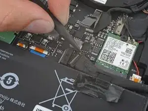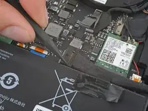 Используйте пинцет с тупыми концами или пальцы, чтобы отлепить ленту кабеля аккумулятора от кабеля.