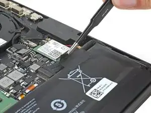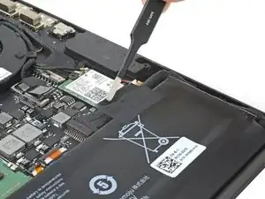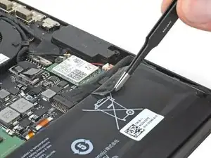 Нанесите нагретый iOpener на ленту кабеля аккумулятора на одну минуту.