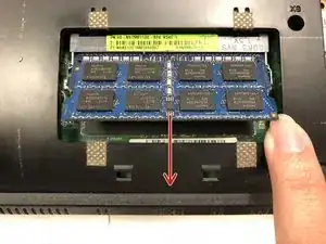 Отведите металлические фиксирующие язычки в стороны, чтобы освободить модули ОЗУ.