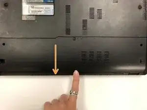 Сдвиньте вниз, чтобы снять основание ноутбука и открыть доступ к ОЗУ.