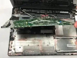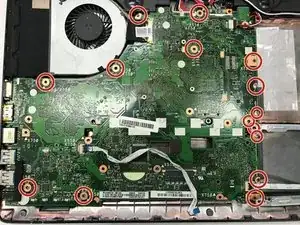 Материнская плата — это большая плата с левой стороны внутренних деталей. Удалите все 15 винтов, которые держат материнскую плату на месте.
