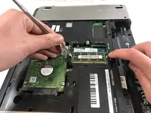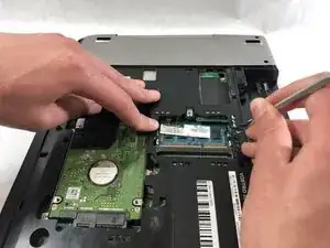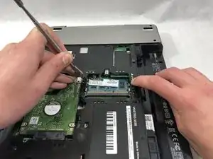 Нажмите на две защелки, которые фиксируют каждую сторону второго модуля ОЗУ.