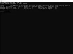 wmic memorychip get devicelocator, manufacturer, partnumber, serialnumber, capacity, speed, memorytype, formfactor