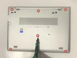 Переверните ноутбук крышкой вниз на ровную поверхность.