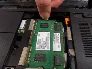 Извлеките модуль памяти, аккуратно потянув его под углом от слота.