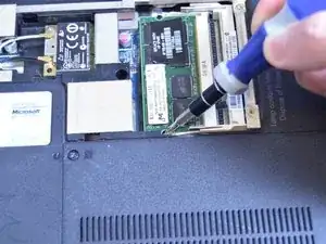 Используйте кончик отвертки, чтобы нажать на зажимы, отводя их от модуля ОЗУ.