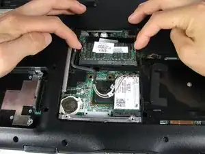 Найдите центральную пластиковую крышку на нижней части ноутбука.