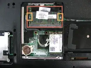 Найдите модуль ОЗУ и металлические вкладки с обеих сторон.