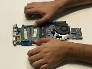 Удалите десять винтов Phillips #1 длиной 1.2 мм, которые крепят материнскую плату к корпусу ноутбука.