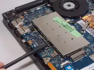Осторожно подденьте крышку отсека памяти от платы с помощью лопатки.