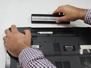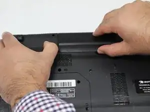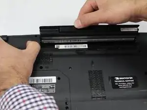 Переверните ноутбук так, чтобы отсек для аккумулятора был направлен вверх.