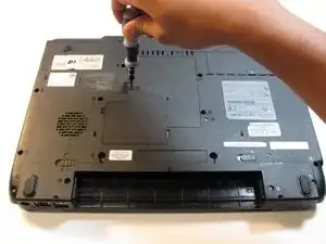 Ослабьте винт на крышке отсека ОЗУ крестовой отверткой Phillips #1.