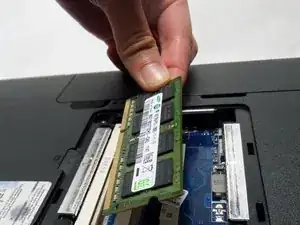 Найдите планку ОЗУ в верхнем левом углу, ближе к нижней части батареи.