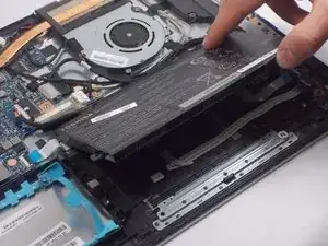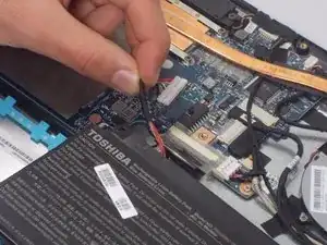Отключите кабель батареи от материнской платы, аккуратно потянув за чёрный провод в месте, близком к белой защёлке.