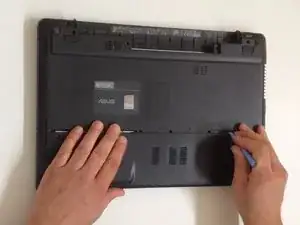Удалите два винта, удерживающих крышку HDD / RAM (обслуживание).
