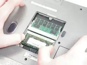 Установите новый модуль под небольшим углом и вдавите его вниз, пока золото на контактах почти полностью не скроется.