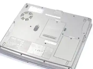 Переверните ноутбук на спину, так чтобы нижняя часть была обращена вверх.