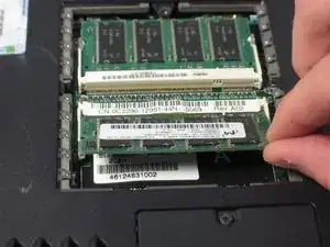 Поднимите оперативную память под углом 45 градусов и извлеките ее.