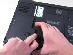 Сдвиньте язычок блокировки батареи и удерживайте его.