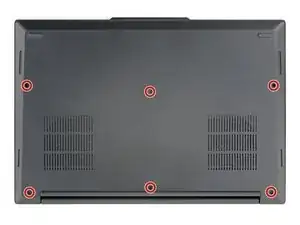 Используйте отвертку Philips, чтобы ослабить шесть фиксированных винтов, удерживающих аккумулятор.