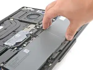 Схватите верхнюю кромку аккумулятора и поднимите, чтобы отключить его.