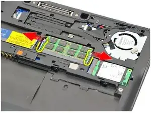 Откройте зажимы удерживания от модуля памяти.
