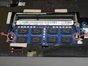 Если у вас установлены две модуля SoDIMM, начните с верхнего и повторите процесс для нижнего.