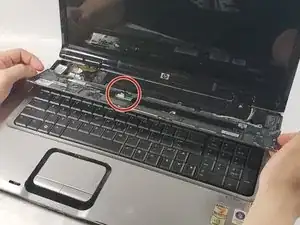 Переверните панель в свою сторону, чтобы открыть кабель, который всё ещё подключён.