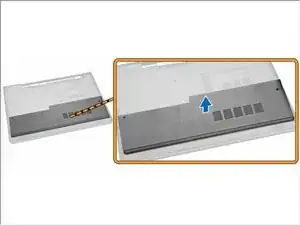 Сдвиньте защелку разблокировки наружу, чтобы разблокировать аккумулятор.