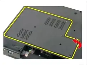 Поднимите край панели доступа, который ближе к центру компьютера.