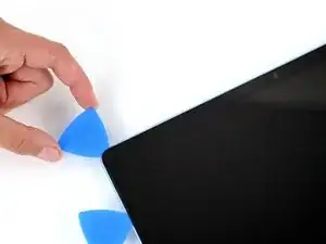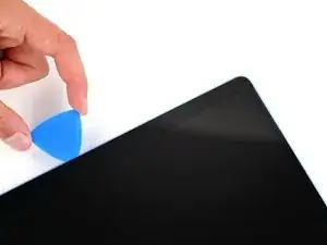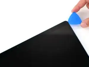 Вставьте свою лопатку на 8 мм под экран и скользите к верхнему правому углу, чтобы отделить оставшийся клей.
