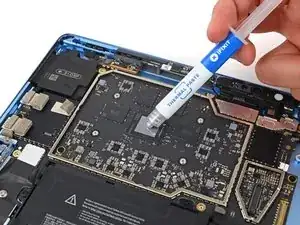 Если на рамке слева от фронтальной камеры есть термопаста, используйте каплю изопропилового спирта и безворсовую ткань (или кофейный фильтр), чтобы очистить данную область.