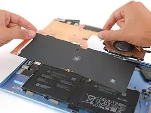 Удалите любые клеевые прокладки с кабеля разъема Surface Connect или нижнего края вентилятора.